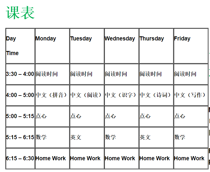 三个月以上价:$250/月 (含 March Break,PA day)