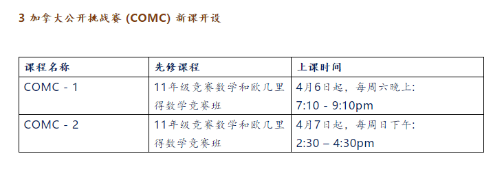 奥林匹克学校几个高级竞赛班的新课开设